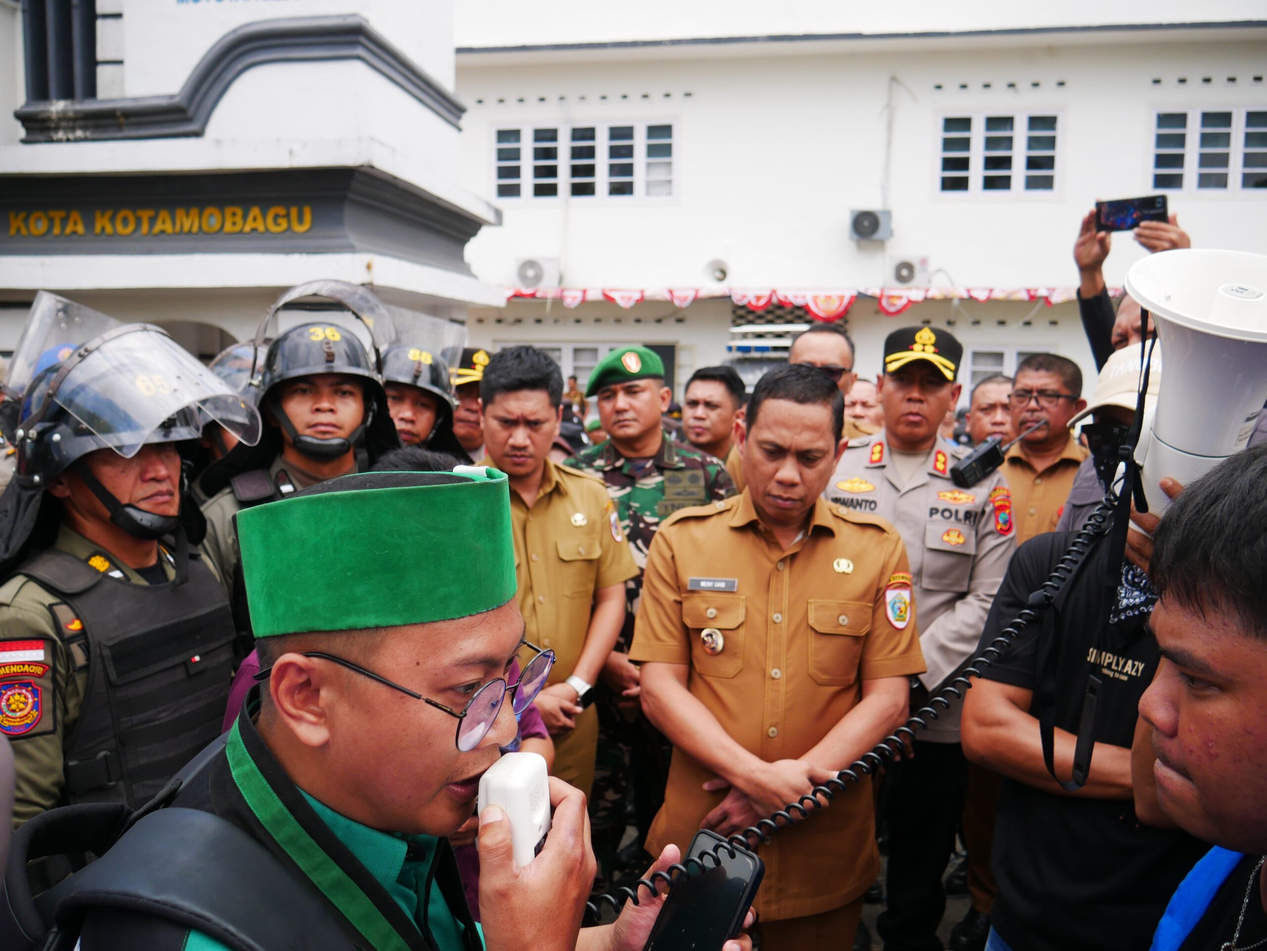 Aksi damai mahasiswa tersebut juga mendapat sambutan langsung dari Wali Kota Kotamobagu, dr. Weny Gaib, bersama dengan Wakil Wali Kota Kotamobagu Rendy Virgiawan Mangkat, SH, MH yang berkomitmen menindaklanjuti aspirasi, serta Kapolres Kotamobagu AKBP Irwanto, SIK, MH .***