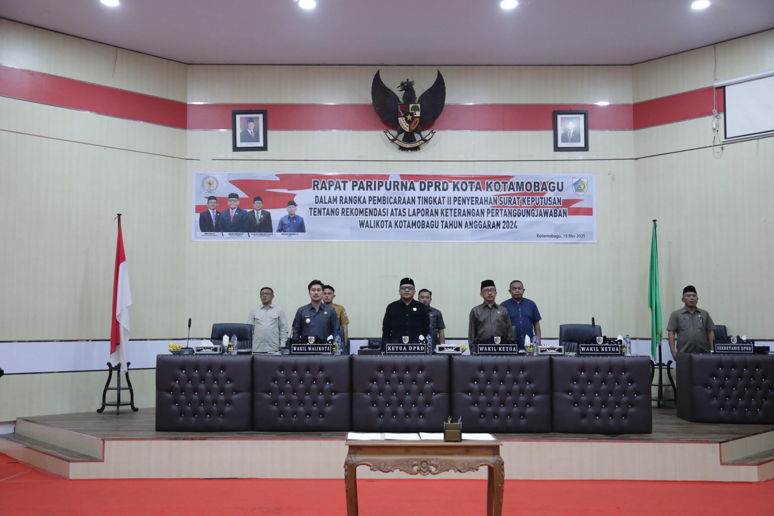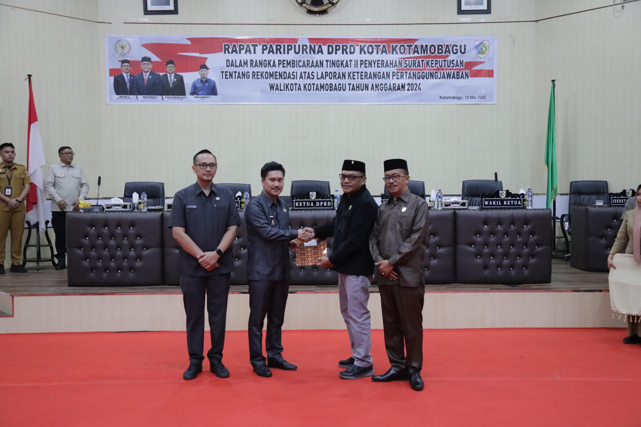 Rapat Paripurna Tingkat II penyerahan Surat Keputusan Rekomendasi atas Laporan Keterangan Pertanggungjawaban (LKPJ) Wali Kota Kotamobagu Tahun Anggaran 2024.