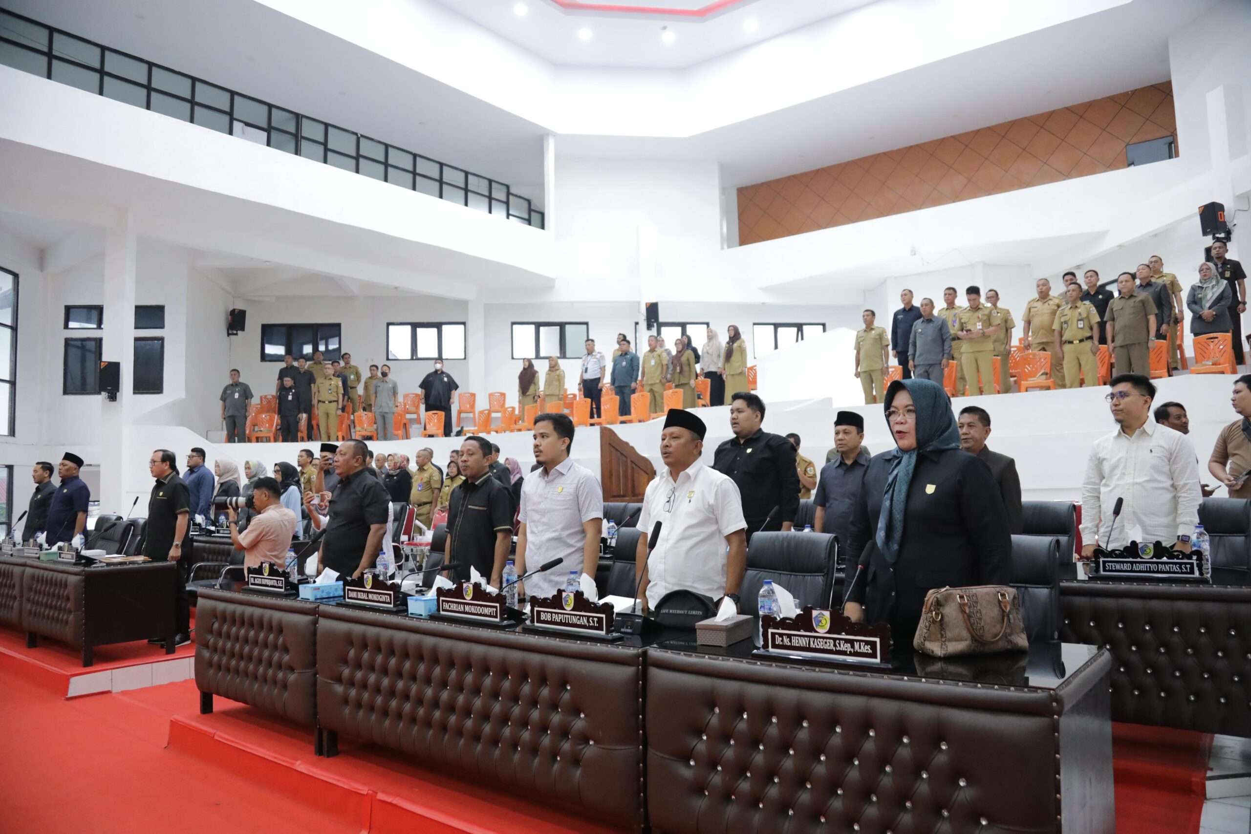 Rapat yang dipusatkan di Ruang Paripurna DPRD itu dipimpin langsung oleh Ketua DPRD, Adrianus Mokoginta, SE, dan dihadiri oleh Wakil Wali Kota Kotamobagu Redy Virgiawan Mangkat, SH, MH, Sekda Sofyan Mokoginta, Wakil Ketua Ahmad Sabir, anggota dewan, Panitia Khusus (Pansus), Forkopimda, serta perwakilan OPD.