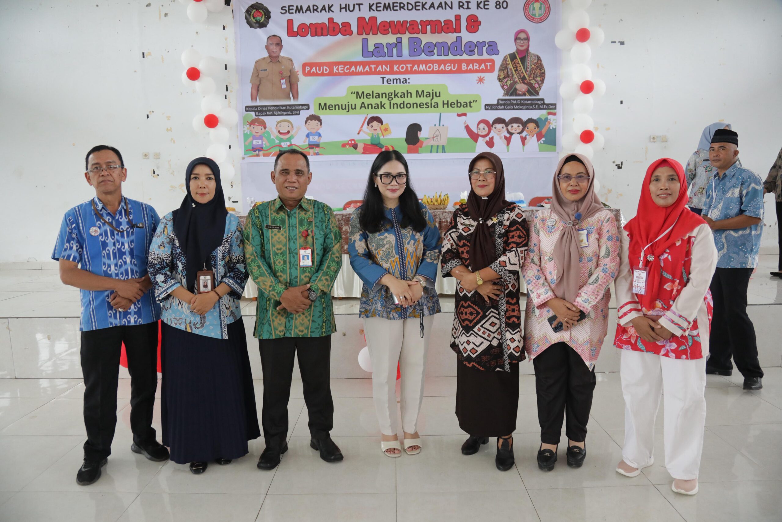 “Saya ingin menyampaikan apresiasi yang setinggi – tingginya disertai ucapan Terima Kasih yang sebesar – besarnya kepada jajaran pengurus Ikatan Guru Taman Kanak-Kanak Indonesia Kota Kotamobagu dan Kelompok Kerja Guru Kecamatan Kotamobagu Barat, yang melaksanakan Lomba Mewarnai dan Lomba Lari Bendera antar PAUD se – Kecamatan Kotamobagu Barat, dalam rangka untuk menyambut Hari Ulang Tahun ke – 80 Kemerdekaan Republik Indonesia,” ujar Resty.