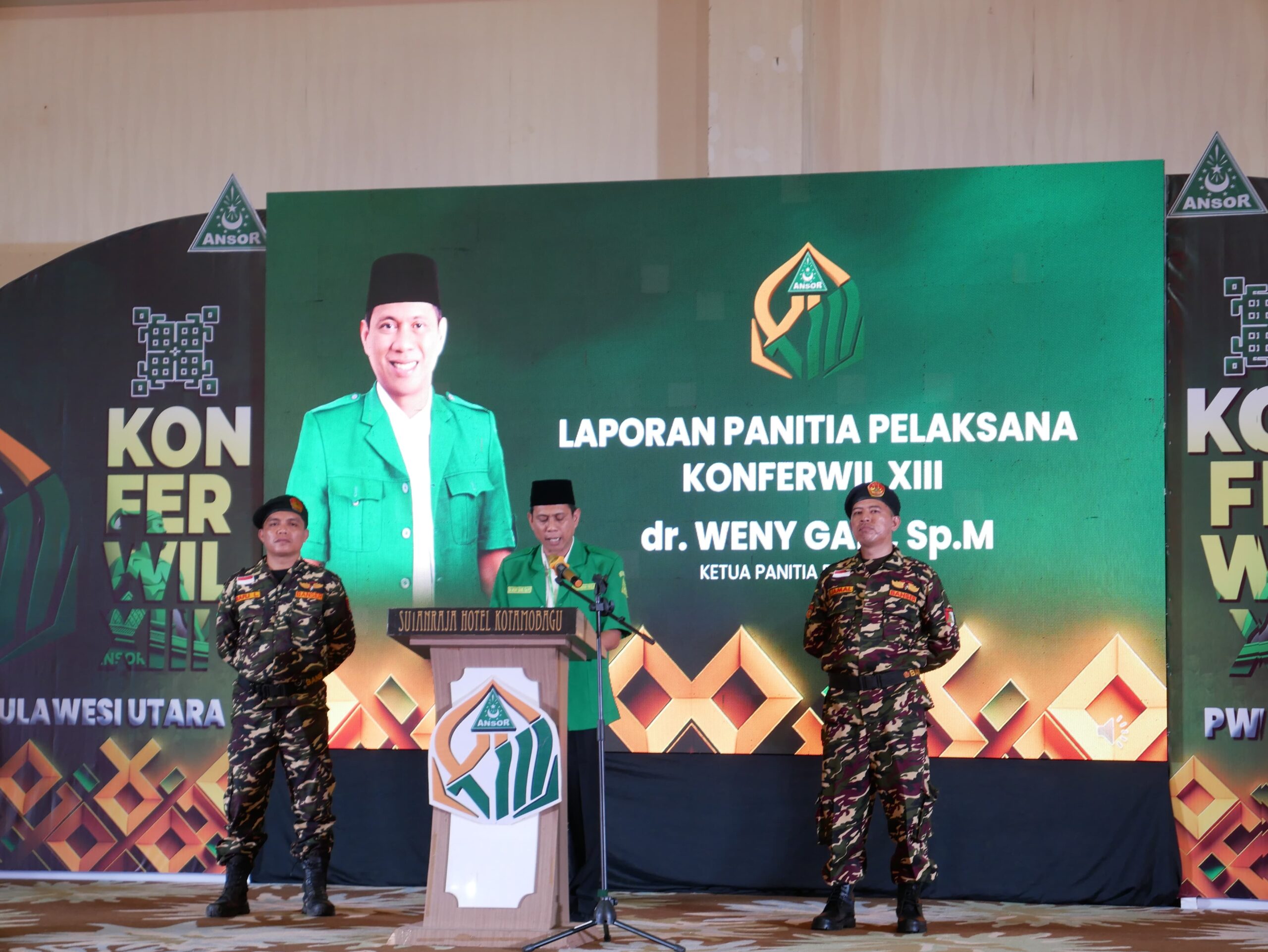 Ketua Panitia Konferwil Ansor, dr Weny Gaib Sp.M yang juga Wali Kota Kotamobagu menyampaikan, selamat datang kepada seluruh tamu undangan, jajaran pengurus wilayah, kabupaten dan seluruh kader GP Ansor Sulut.