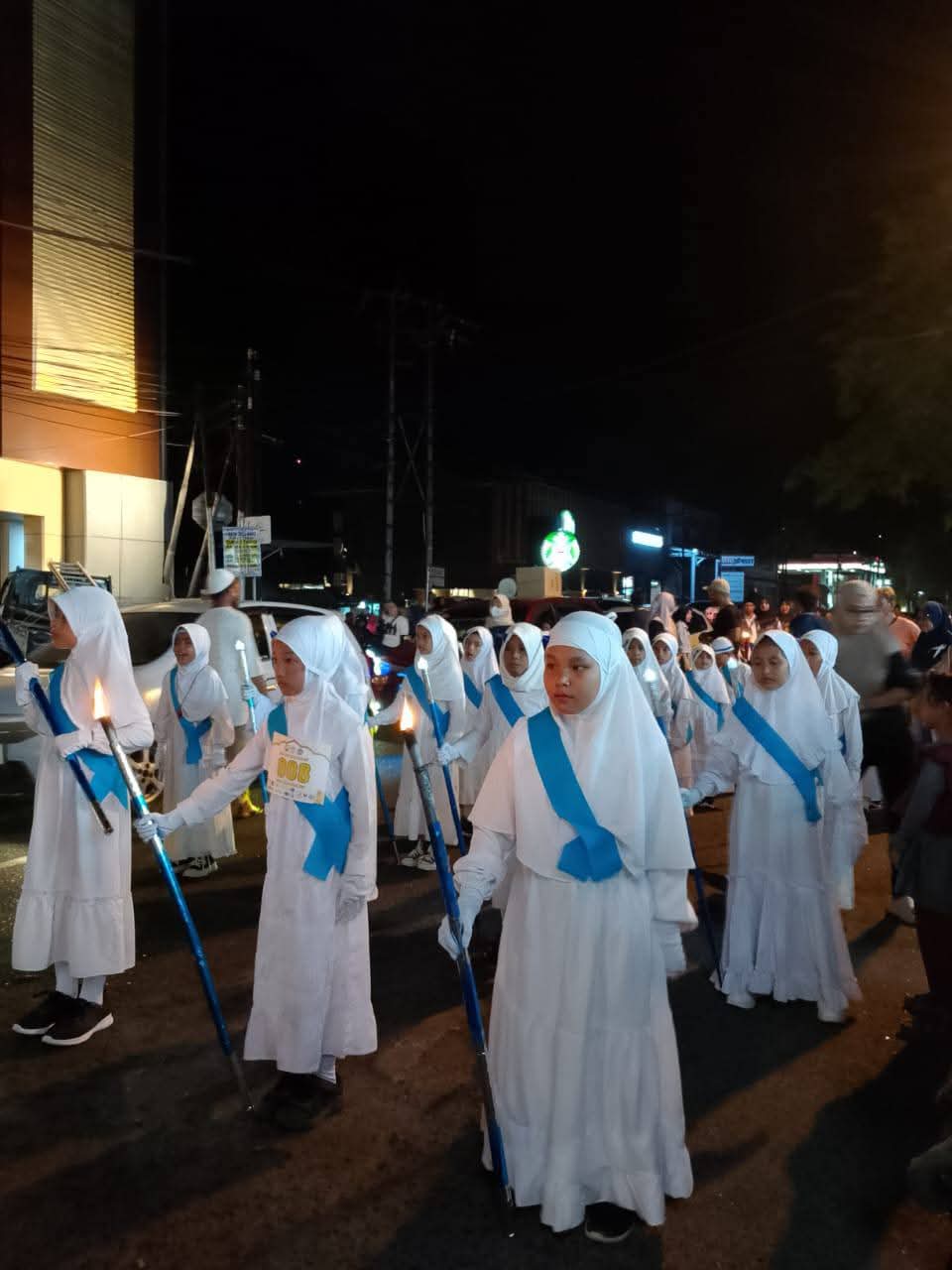 Ribuan warga tumpah ruah memadati jalanan, menyaksikan prosesi penuh cahaya yang diiringi lantunan sholawat dan nyanyian religius. Warga yang menonton pun memberikan dukungan dengan tepuk tangan dan sorakan semangat kepada para peserta.