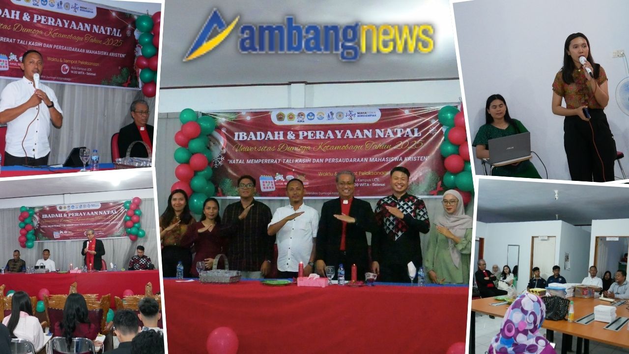 KOTAMOBAGU, ambangnews.com — Ibadah dan perayaan Pra Natal Universitas Dumoga Kotamobagu (UDK) berlangsung khidmat dan penuh sukacita dengan melibatkan seluruh unsur civitas akademika serta organisasi kemahasiswaan lintas perguruan tinggi. Kegiatan ini menjadi perayaan Pra Natal perdana yang digelar di lingkungan Kampus UDK, Jumat sore (19/12/2025).