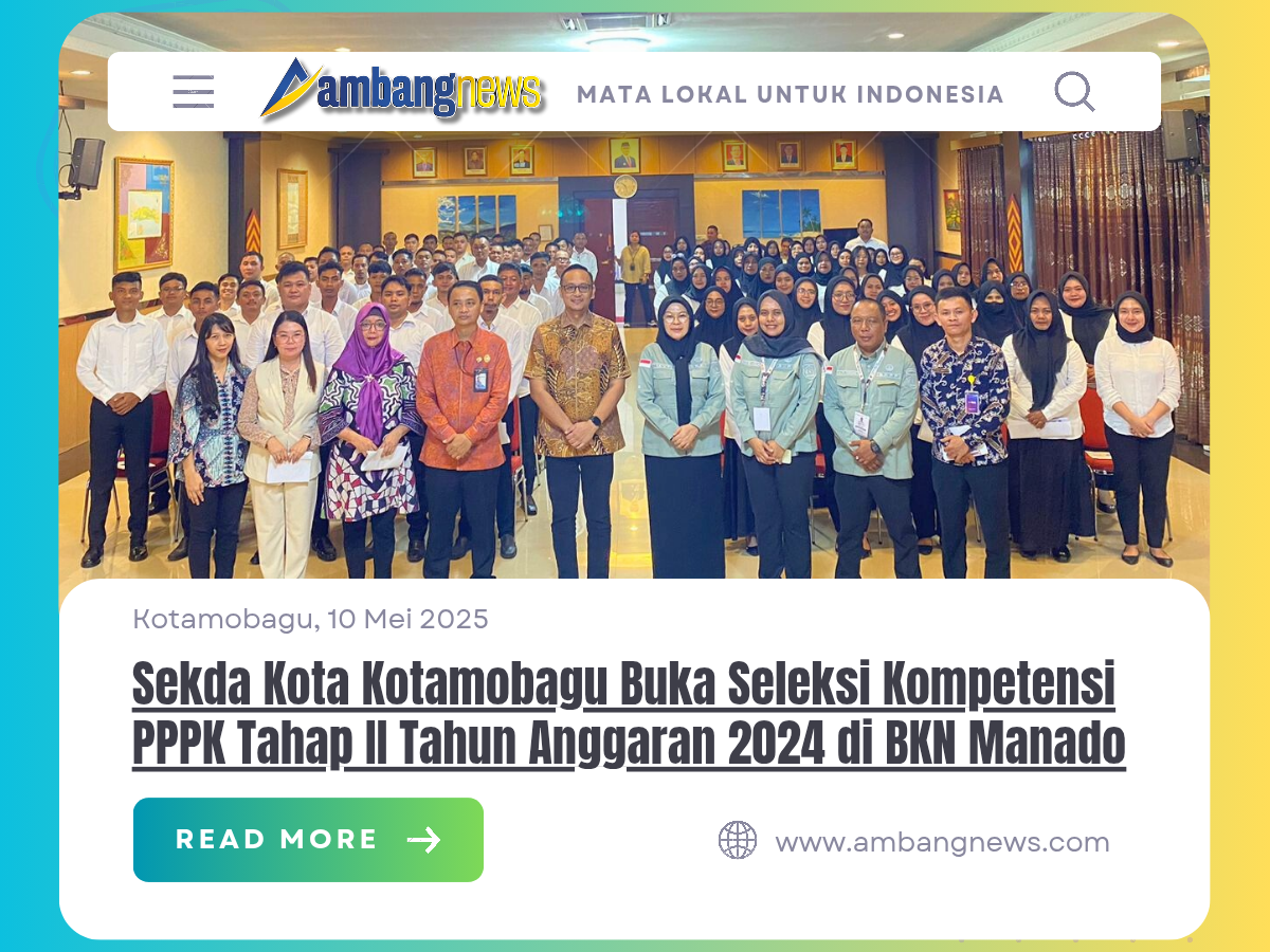 Kotamobagu, ambangnews.com — Seleksi Kompetensi Pegawai Pemerintah dengan Perjanjian Kerja (PPPK) Tahap II Tahun Anggaran 2024 di lingkungan Pemerintah Kota Kotamobagu, yang bertempat di Kantor Regional XI Badan Kepegawaian Negara (BKN) Manado resmi dibuka pada Sabtu (10/05/2025).
