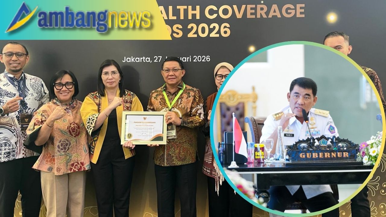 SULUT, ambangnews.com -Provinsi Sulawesi Utara (Sulut) di bawah kepemimpinan Gubernur Mayjen TNI (Purn) Yulius Selvanus, SE kembali menorehkan prestasi membanggakan di tingkat nasional setelah resmi menjadi salah satu provinsi penerima Universal Health Coverage (UHC) Award 2026 sebagai bentuk pengakuan atas komitmen tinggi pemerintah daerah dalam menjamin perlindungan kesehatan masyarakat. Penghargaan tersebut diserahkan dalam acara deklarasi dan pencanangan UHC di Ballroom JIExpo Kemayoran, Jakarta, Selasa (27/1/2026).