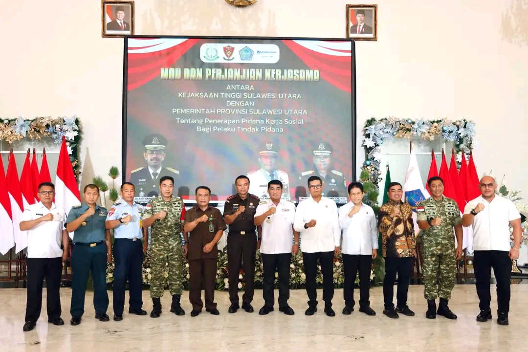MANADO, ambangnews.com – Pemerintah Provinsi Sulawesi Utara resmi memulai babak baru dalam sistem penegakan hukum di daerah. Gubernur Sulawesi Utara, Yulius Selvanus Komaling (YSK), menandatangani Nota Kesepahaman (MoU) strategis bersama Kejaksaan Tinggi (Kejati) Sulut untuk menerapkan skema pidana kerja sosial sebagai alternatif pemidanaan. Rabu 10 Desember 2025.