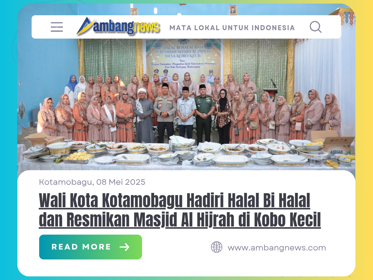 Kotamobagu, ambangnews.com — Wali Kota Kotamobagu, dr. Weny Gaib, Sp.M, menghadiri kegiatan Halal Bi Halal bersama masyarakat dan Pemerintah Desa Kobo Kecil, Kecamatan Kotamobagu Timur, pada Kamis (08/05/2025).