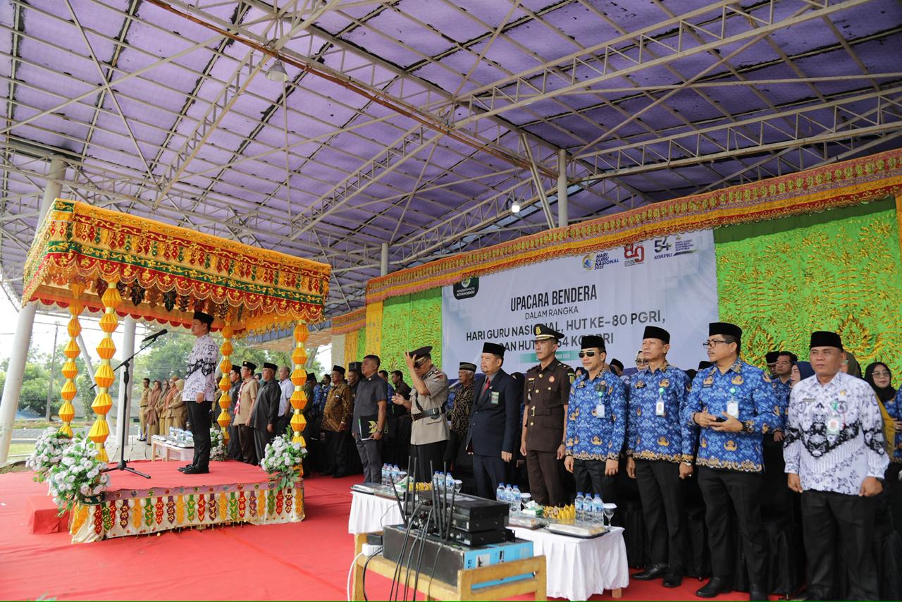 Kotamobagu, ambangnews.com -Wakil Wali Kota Kotamobagu, Rendy Virgiawan Mangkat, S.H., M.H., memimpin Upacara Peringatan Hari Guru Nasional, HUT PGRI ke-80, dan HUT KORPRI ke-54 yang digelar Pemerintah Kota Kotamobagu. Acara berlangsung di Alun-alun Boki Hontinimbang, Senin (1/12/2025).