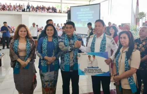 Safari Natal Pemerintah dan masyarakat Kabupaten Minahasa Selatan ditutup dengan penyerahan berbagai bantuan dari Pemerintah Provinsi Sulawesi Utara kepada Pemerintah Kabupaten Minahasa Selatan sebagai wujud kepedulian dan komitmen terhadap pembangunan berkelanjutan.(adv)